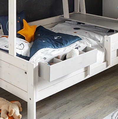 Opbergbox, 4-in-1 bed met dakconstructie/Montessori bed 90x200/Bed 90x200/Halfhoogslaper 90x200/Hoogslaper 90x200/Hoogslaper Study & Relax 90x200, white voor eenpersoonsbed Lifetime Kidsrooms Kamer opberger
