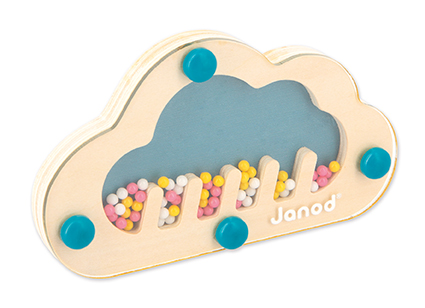 • De doos bevat ook een wolkvormige houten regenstok die zeker de nieuwsgierigheid van uw peuter zal prikkelen: de ronde vorm is perfect om vast te houden en de kleine gekleurde kralen zijn fascinerend om naar te kijken.