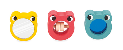 • De eerste is een houten kikkervormensorteerder met zijn 3 kleurrijke baby's: elk van de insteekvormen zorgt voor een andere zintuiglijke activiteit (spiegeleffect en gekleurde filters) en een aparte kleur om uw kind te helpen zijn eerste vormensorteerspeelgoed op te lossen. Voor een nog rijkere zintuiglijke ervaring zijn er ook 3 stoffen met verschillende texturen inbegrepen. Verberg ze in de vormensorteerdoos en laat de baby ze pakken door naar binnen te reiken!