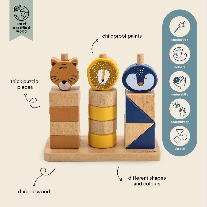 | Extra specificaties: | De puzzel is gemaakt van 100% FSC gecertificeerd hout. Alle verven zijn op waterbasis en veilig voor baby's |