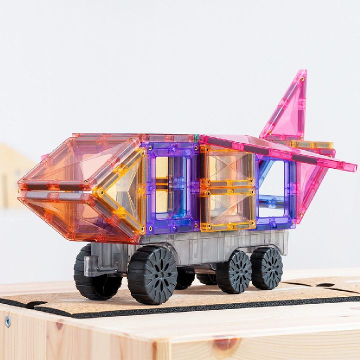 Ontdek STEAM-onderwijs terwijl je magnetisme, vormen en kleuren verkent om je eigen vrachtwagens en treinen, vliegtuigen en ambulances, brandweerwagens en vorkheftrucks na te maken. Deze set kan kinderen helpen leren over technische principes zoals stabiliteit, balans en symmetrie, terwijl ze zich bezighouden met fantasierijk spel.