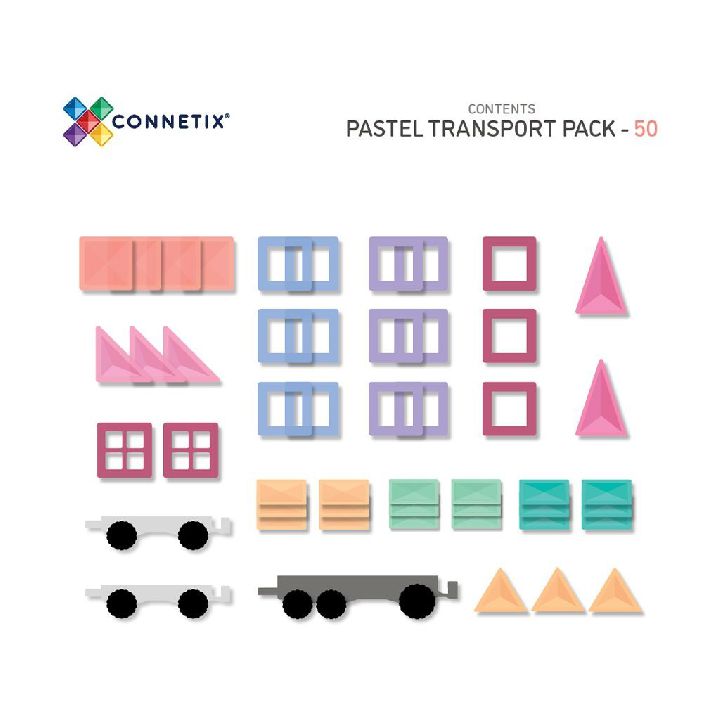 Connetix Tiles Transport Pack - 50 | Magnetic Tiles Pastel Range