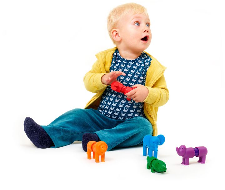 De extra grote, zachte onderdelen van de dieren klikken eenvoudig op de staven.