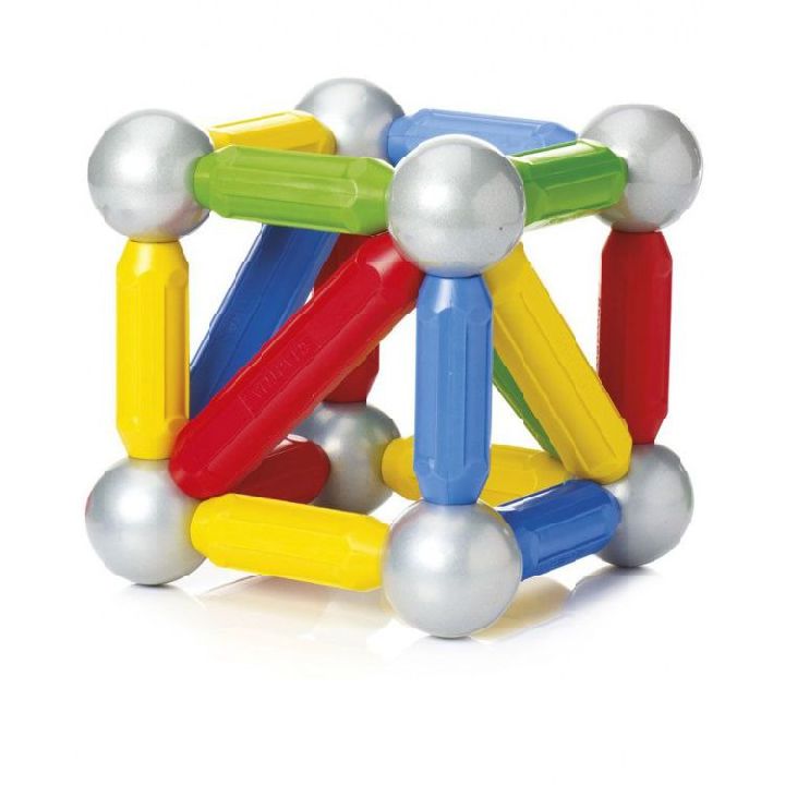 Deze set bevat 23 speelstukken: korte en lange staven & metalen ballen. Genoeg om tal van 2D of 3D figuren te gaan maken. Met het bijgeleverde instructieboekje zetten we jullie alvast op gang.